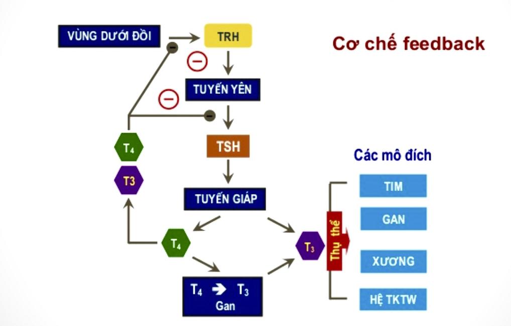 👉 Khi T3, T4 giảm, tuyến yên sẽ tăng TSH để kích thích tuyến giáp hoạt động.